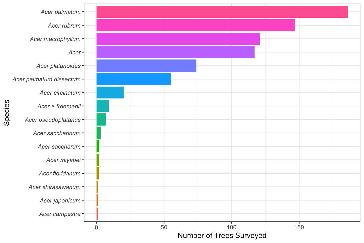 FIG 12: Number of maple trees surveyed by species.
